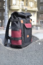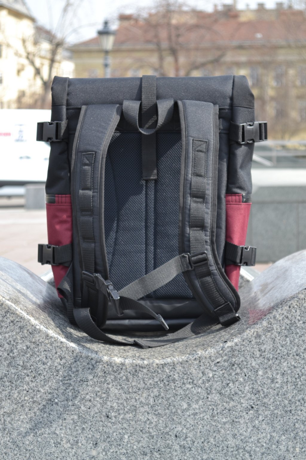 You can find a bigger slim pocket inside for A4 letters, and two small pockets for smaller things. The inside is covered with lightened tarpaulin. And here comes the best part: the rolltop isn’t made with Velcro: you can search for hours inside the bag without having to stick the Velcro together, because it’s closing magic: MAGNETS!