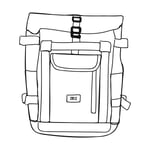 Materials: Cordur (outside), lightened tarpaulin (inside), Velcro, waterproof zippers with metal sliders, hardened polyester straps, ITW side release buckles.